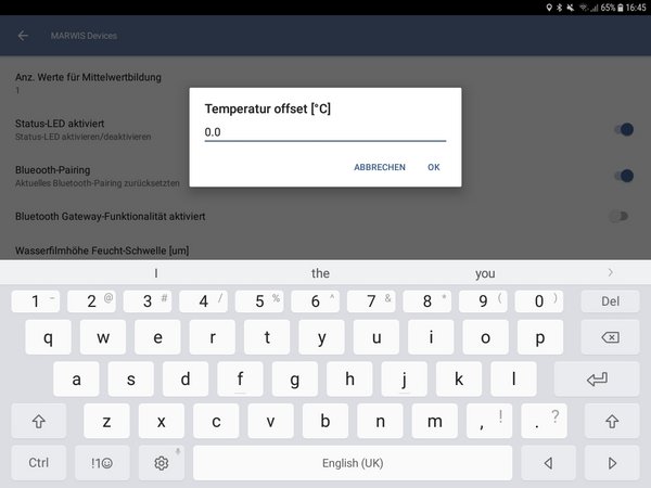 | Kommunikations-Timeout | 150ms | Kommunikations-Timeout in Millisekunden für die Bluetooth-Kommunikation mit dem MARWIS-Sensor |